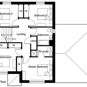 This design presents a charming and functional living space with four bedrooms. As you step inside this one-and-a-half-storey residence, a thoughtful layout unfolds. To the left, a dedicated study provides a quiet workspace, while to the right, a welcoming lounge awaits. The ground floor further boasts a dining room, seamlessly connected to an open-plan family room and kitchen. An adjoining utility room and bathroom add practicality and an integral garage enhances convenience.