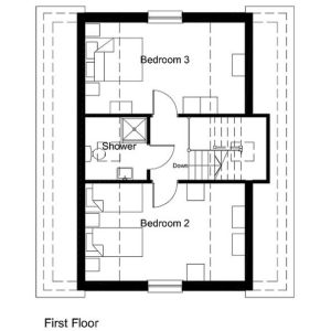 Boasting three bedrooms, this thoughtfully crafted home effortlessly blends functionality with aesthetic appeal. The ground floor encompasses a versatile dining room that can double as an additional bedroom, a cosy lounge, bathroom, kitchen, and a comfortably sized bedroom. The upper level hosts the remaining two bedrooms and an additional shower room.